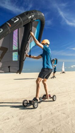 Wings er en helt ny sport, der kommer mere og mere frem i Europa. Wings er oprindeligt designet til at være på vand, men OurStuff har udviklet vores helt egen landboard, der er velegnet til også at køre på stranden.